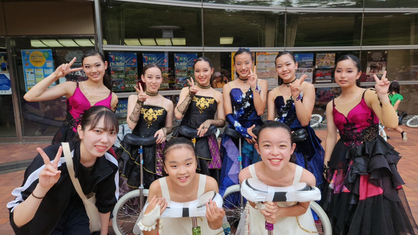 SHISHAMO、トゲトゲ、sumika、中村憲剛さんなどの有名人が踊る中、一輪車川崎支部の仲間達と一緒に登場。